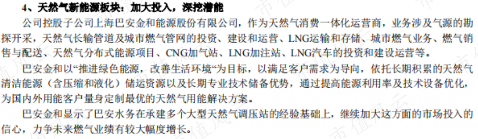 根据公司年报介绍,巴安金和作为天然气消费一体化运营商,业务涉及气源的勘探开采,天然气长输管道及城市燃气管网的投资、建设和运营……