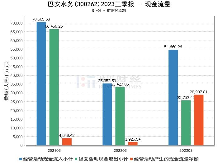 综上所述,巴安水务2023年三季度在总资产和负债方面均有所下降,但在营业收入、毛利率和现金流量方面均有所提升。特别是经营活动产生的现金流量净额大幅提升,显示出公司的经营活动现金流较为充裕。
