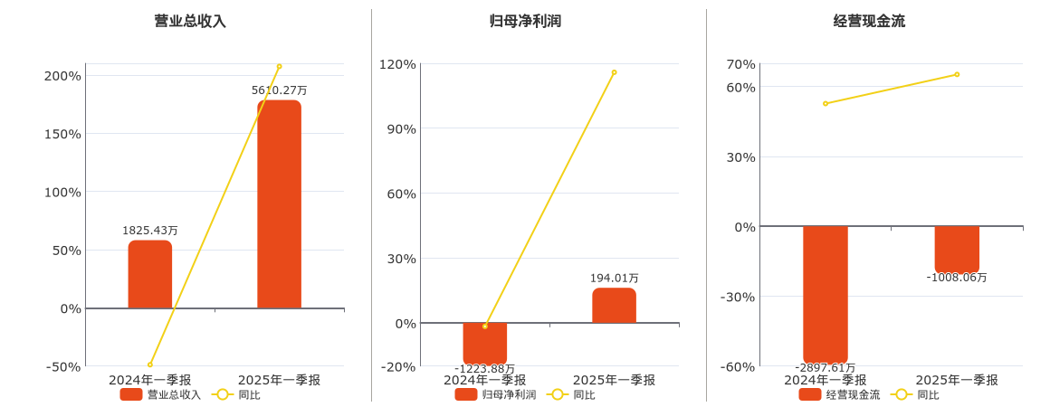 公司营业总收入为5610.27万元。归母净利润为194.01万元。经营活动现金净流入为-1008.06万元。