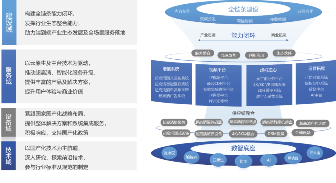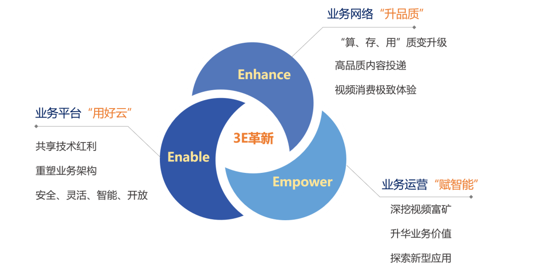 在此背景下,广电 IP 视频平台面临价值重构。内容价值从单一画质提升转变为强调“可交互、可衍生、可跨界”,平台角色也从内容搬运工进化为全场景服务生态中枢。为实现这一重构,佳创视讯提出“3E 革新”策略,即业务平台“用好云”,重塑架构并共享技术红利;业务网络“升品质”,解决超高清内容分发难题;业务运营“赋智能”,深挖视频富矿并探索新型应用。