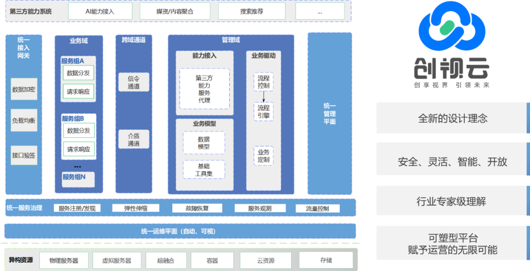 针对当代视频平台竖井式单体建设、灵活性差等困局,佳创视讯推出两款核心产品。新一代互动视频平台“创视云”,以全新设计理念,实现统一接入网关、管理平面、服务治理和运维平面,管理域与业务域分离,具备安全、灵活、智能、开放特性,为运营赋予无限可能。新一代畅流 CDN 产品,在安全稳定和用户体验方面全面升级,自研 ARTC 协议实现亚秒级超低时延直播,支持多种备份模式,抗弱网能力强,且全面支持国产化,满足运营商信创需求。