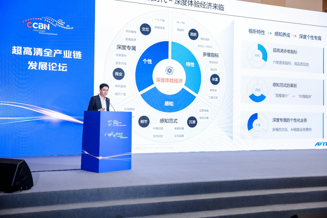 超高清时代的来临,为视听行业带来全方位变革。苏振宇指出,深度体验经济在这一时代全面兴起,超高清内容凭借分辨率、帧率、色彩表现等多维指标提升,从单纯的“观看媒介”转变为“共情载体”。借助深度学习与多模态交互技术,能够实现“一人千面”的个性化服务,满足用户日益多样化的需求。