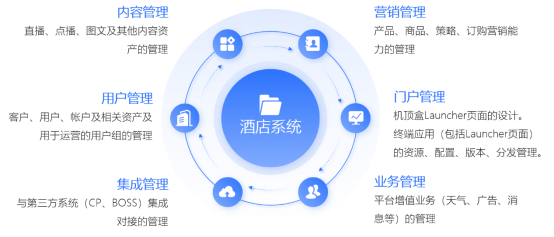项目设计坚持“现网兼容”与“业务扩展”双轮驱动,在完整继承家庭客户核心功能模块的基础上,创新性开发行业专属服务组件,形成“基础功能复用+行业特性定制”的高效服务模式。系统上线后,可支持酒店客户快速部署电视端互动服务、智能客房控制、多媒体信息发布等核心应用,有效降低信息化建设成本,提升服务响应效率。