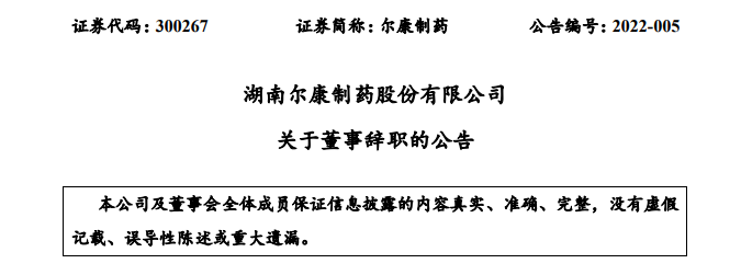 无独有偶,同日中国医药健康产业股份有限公司披露了一则辞职公告。