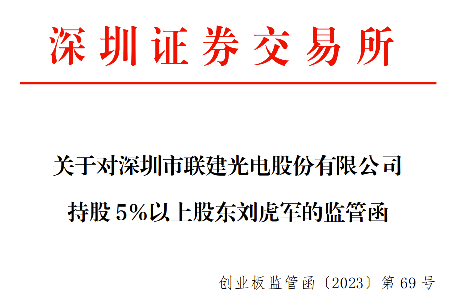 今日,联建光电持股5%以上股东、原实控人刘虎军因被动减持公司股票违规收深交所监管函。