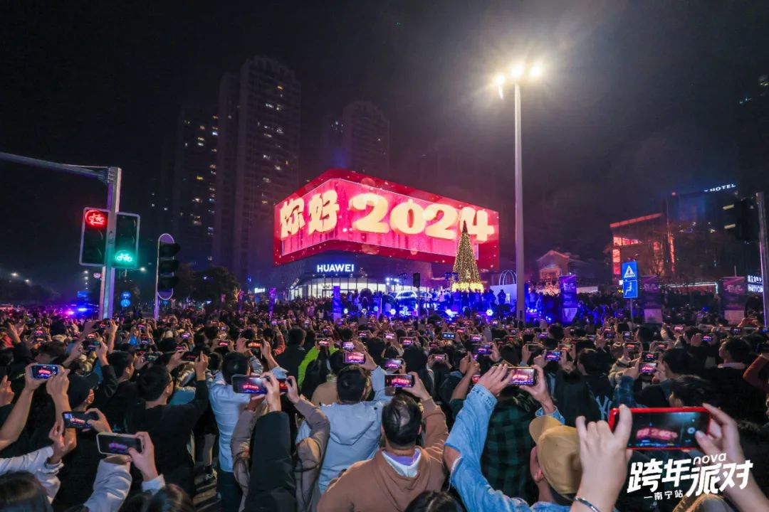从2023奔向2024,南宁绿地中央广场裸眼3D大屏前,人潮汹涌,激情澎湃,大家一起迎来了最具科技感的跨年夜!