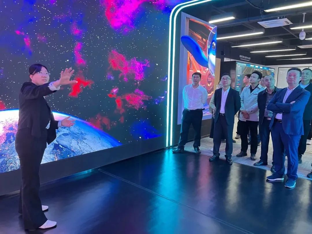 走访团一行首先参观了联建光电展厅,总经理乔建荣详细介绍了LED显示系统解决方案的多元化应用,并结合数据化指挥中心、裸眼3D、星光舞台演绎、多功能会议等场景详细介绍了联建光电的核心技术成果和案例。