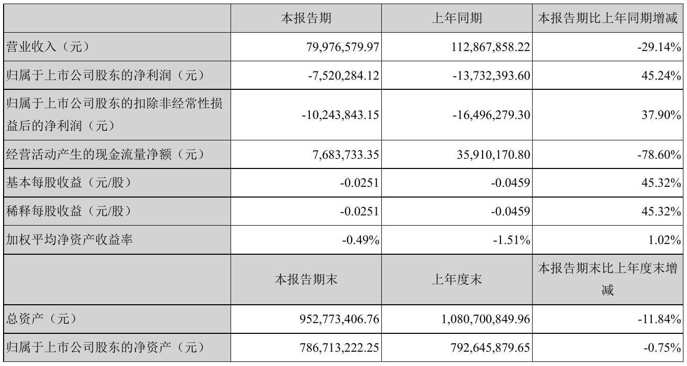 挖贝网8月27日,中威电子(300270)近日发布2021年半年度报告,报告期内营业收入79,976,579.97元,同比减少29.14%;亏损7,520,284.12元,同比亏损减少45.24%。