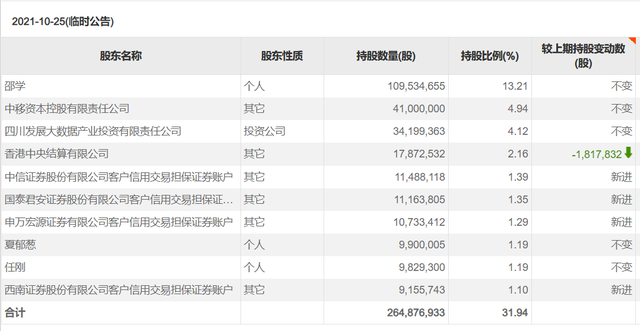 数据显示,目前邵学仍为华宇软件第一大股东,持股13.21%。按照公司目前97.08亿市值计算,邵学身家达12.82亿。毕业于清华大学精密仪器系的邵学,曾在2019年上榜胡润百富榜。因涉嫌单位行贿被立案调查,2021年9月18日被刑事拘留。