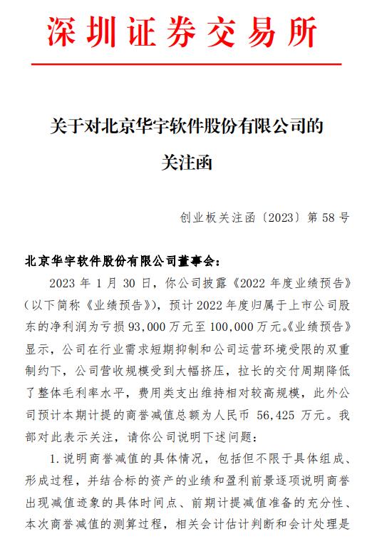华宇软件2日收关注函,要求公司说明是否存在通过计提大额商誉减值准备调节利润的情形。