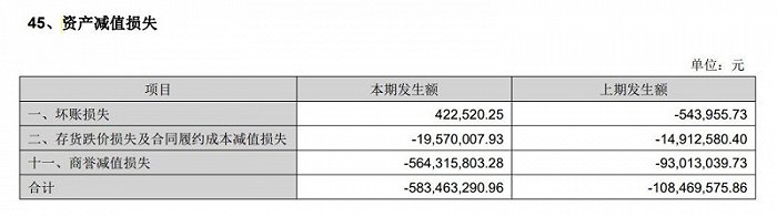 合并利润表显示,2022年华宇软件的资产减值损失高达5.83亿元,和上一年度的1.08亿元相比,损失额增长了4.75亿元,是上一年度的数倍之多。其中最主要的是商誉减值损失,高达5.64亿元。