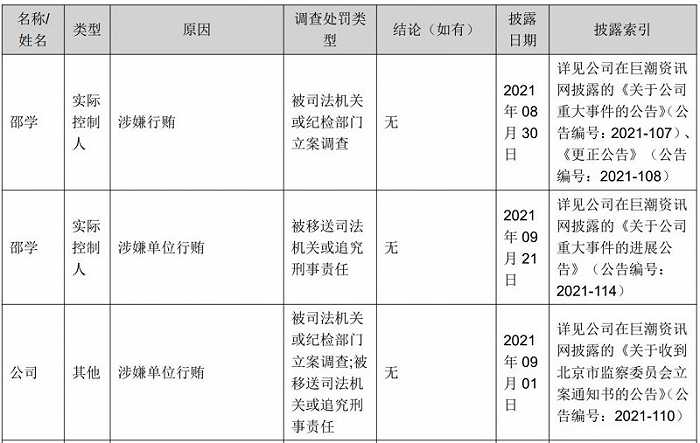 实际上,公告显示,早在2021年3月22日,华宇软件就收到了监察委的通知,对公司董事长、总经理邵学涉嫌行贿的违法问题立案调查,并自2021年3月21日对其实施留置。