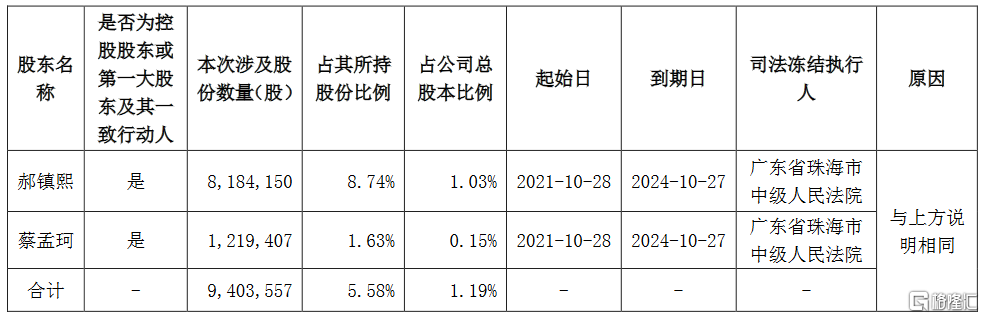 格隆汇11月2日丨和佳医疗(300273.SZ)公布,公司近日接到控股股东、实际控制人郝镇熙、蔡孟珂的通知,获悉公司控股股东、实际控制人郝镇熙及蔡孟珂因涉及合同纠纷诉讼被申请诉讼财产保全,导致其所持有的公司部分股份被司法冻结,具体情况如下: