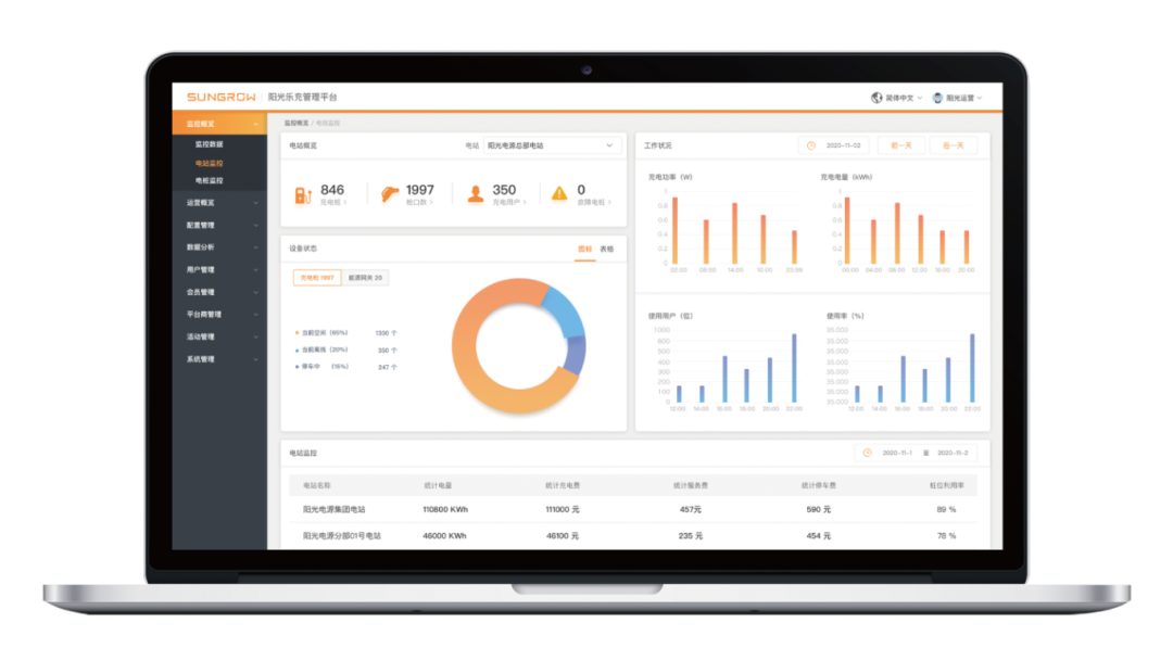 阳光乐充管理平台利用大数据和物联网技术,为用户提供精细化运营、自动化运维和智能化诊断等服务。平台支持多种客户端(Android、i0S、微信小程序及公众号),兼容主流运营平台,最大化提升充电站运行效率,降低运营成本。