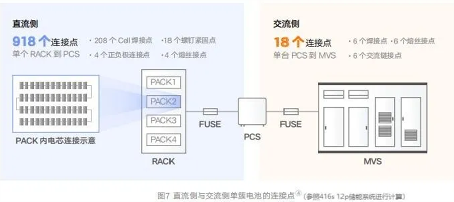 储能系统直流侧电路上分布着数以万计的电气连接点,风险就隐藏在其中。《白皮书》介绍,以5MWh储能系统为例,直流侧连接点约11016个(每个电池簇918个连接点),而交流侧连接点仅有216个,直流侧电气连接点数量是交流侧的50多倍,风险高出交流侧数十倍。