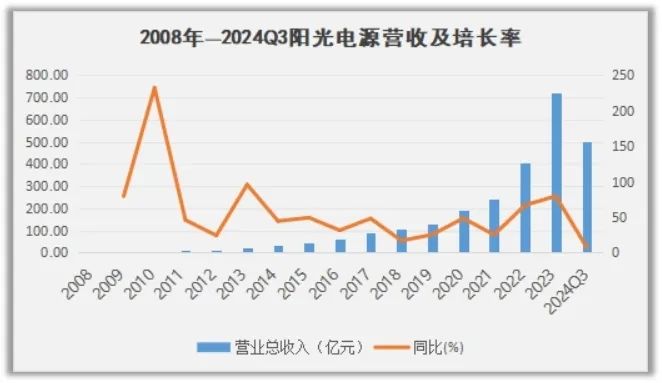 2024年三季报,阳光电源交出了一份“矛盾”的成绩单。前三季度公司实现营业收入499.46亿元,同比增长7.61%;归母净利润76.00亿元,同比增长5.21%;虽然业绩保持增长,但增速已明显放缓。
