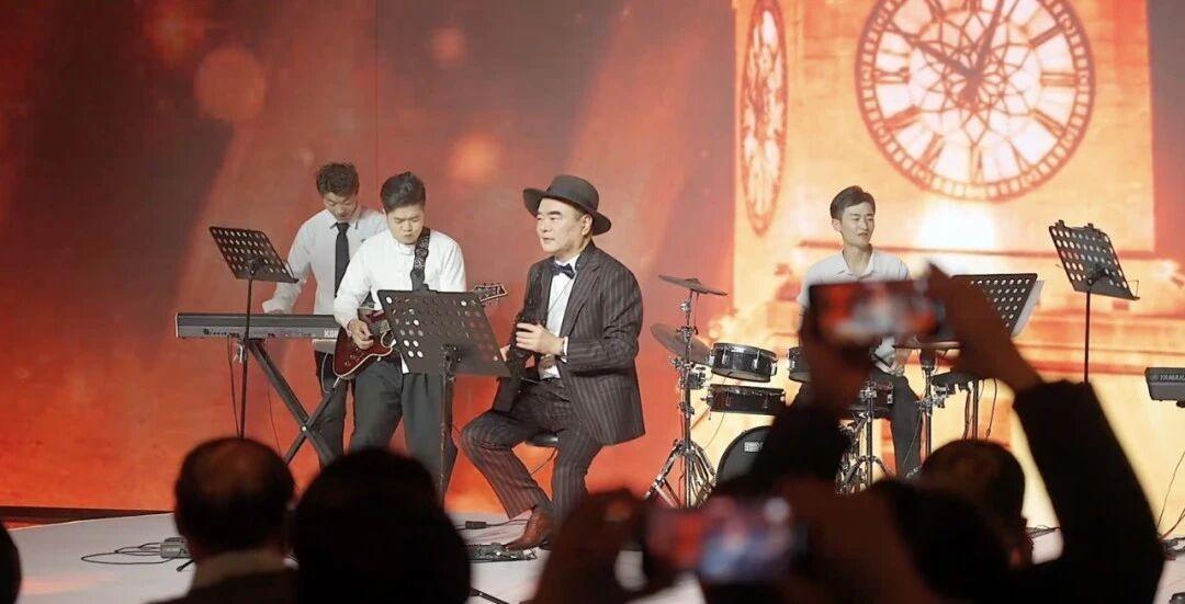 【在阳光大厦启用仪式上吹奏萨克斯的曹仁贤。图源:安徽日报元新闻】