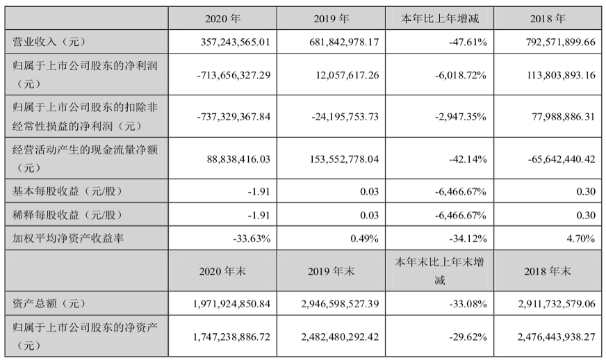 除了高管层相继辞职外,三盛教育近年业绩表现也不容乐观。公司2020年年报显示,在营收接近“腰斩”的同时,归母净利润由2019年的盈利1205.76万元,变为2020年亏损7.14亿元,同比降幅达6018.72%。