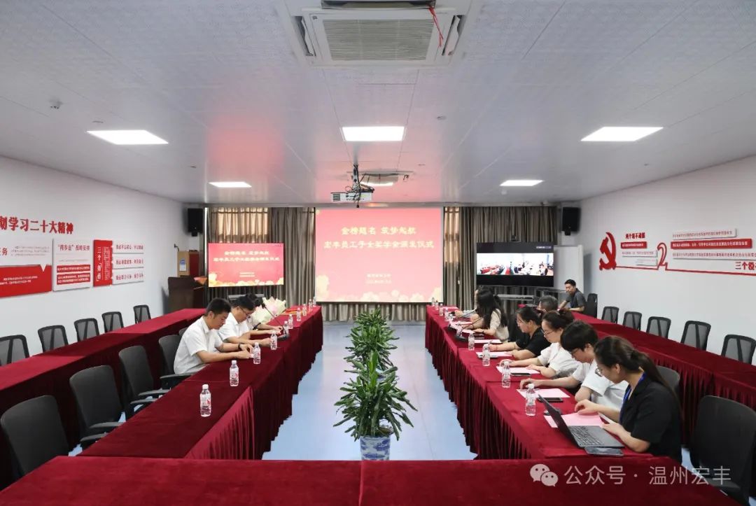十年寒窗苦读,一朝金榜题名。为鼓励员工子女勤奋求学、奋发前行,增强企业员工的幸福感和凝聚力,8月16日上午,“宏丰员工子女奖学金”颁发仪式在温州海经厂区隆重举行,颁发仪式除了温州主会场外,还在嘉兴海盐的半导体公司设立分会场,通过线上连线的形式同步进行颁奖。公司工会主席周庆清、副主席范承成、工会各委员及获奖员工子女家长代表出席本次奖学金颁发仪式。