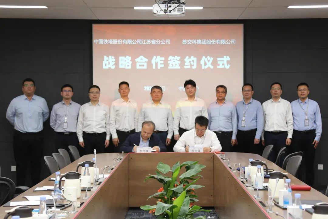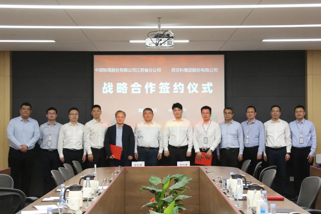4月17日,中国铁塔股份有限公司江苏省分公司(以下简称“江苏铁塔”)与苏交科集团股份有限公司(以下简称“苏交科”)战略合作签约仪式在苏交科南京设计中心顺利举行。江苏铁塔党委书记、总经理李工,党委委员、副总经理潘韬等相关部门负责人出席会议。集团董事长李大鹏、副总裁何兴华、副总裁(规划设计)张捷报及相关部门负责人见证签约并参与座谈交流。
