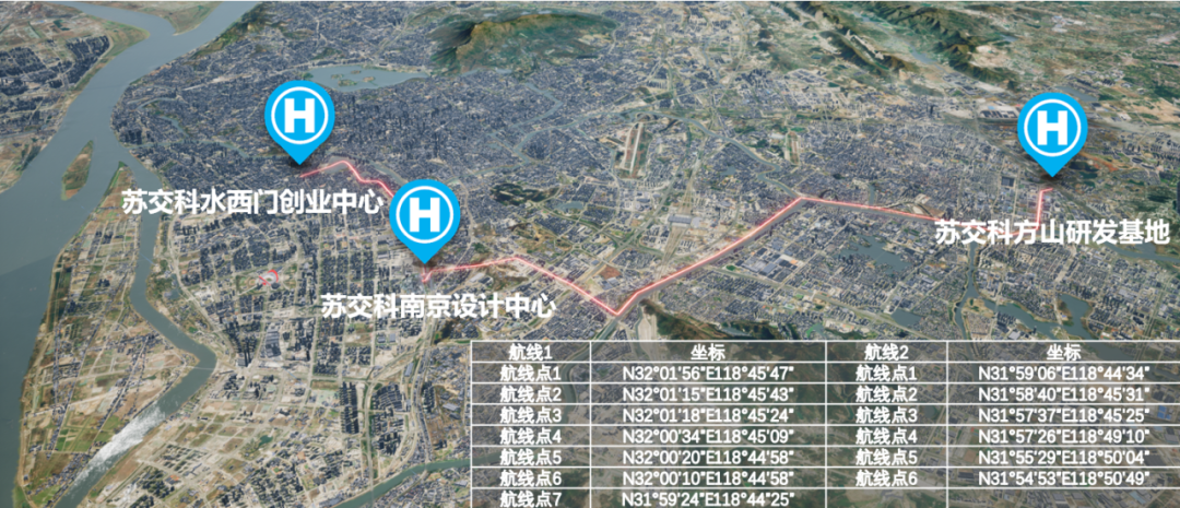 为贯彻落实《省政府办公厅关于加快推动低空经济高质量发展的实施意见》,苏交科结合南京设计中心、水西门创业中心、方山研发基地的日常文件流转应用场景,积极探索建立低空即时运输网络,落地低空飞行应用场景。