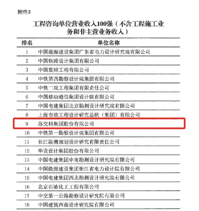 在外部发展环境的复杂性、不确定性显著上升的背景下,苏交科集团依然抵御重压,深耕主营业务,切实推进企业发展转型升级。荣登榜单,充分体现了集团在基础设施领域的综合实力与稳中向好的经营状况。
