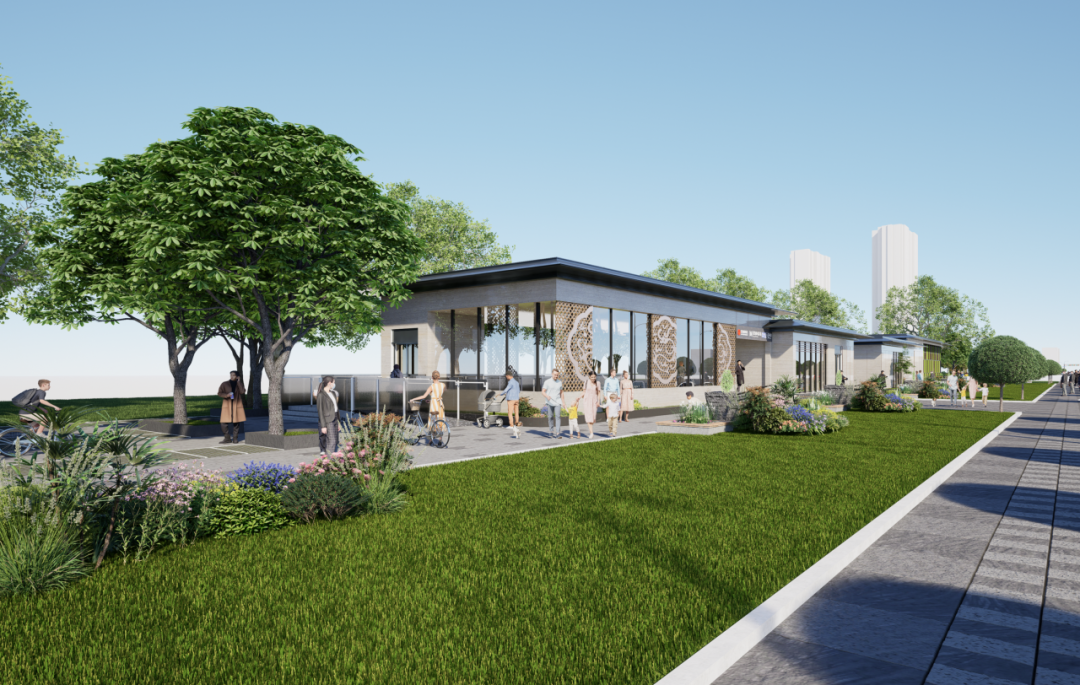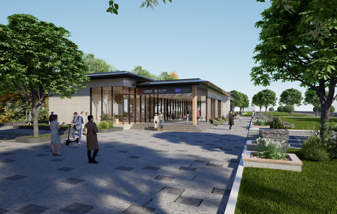 集团项目组将地铁附属功能与设计相融合,有效缓解了金山桥站与杨庄站地铁风亭给城市景观造成的视觉冲突,将其创新性地转化为可供市民静享闲暇时光的雅致空间,实现了城市功能性设施与美学景观的和谐共生,为城市发展注入了新的活力与魅力。