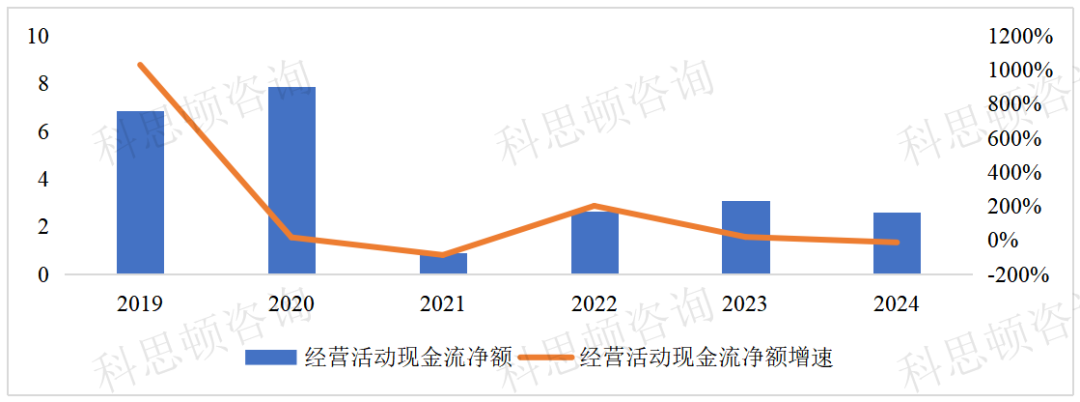 2019年以来,苏交科经营性现金流净额始终为正。2024年末,账上资金(现金及现金等价物)为24.65亿元,较上年减少1.82亿元,降幅达6.9%。