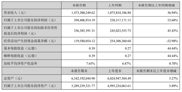 集微网消息,7月27日晚间,国瓷材料发布半年报称,上半年归属于母公司所有者的净利润3.94亿元,同比增长52.68%;营业收入14.73亿元,同比增长36.94%;基本每股收益0.39元,同比增长44.44%。