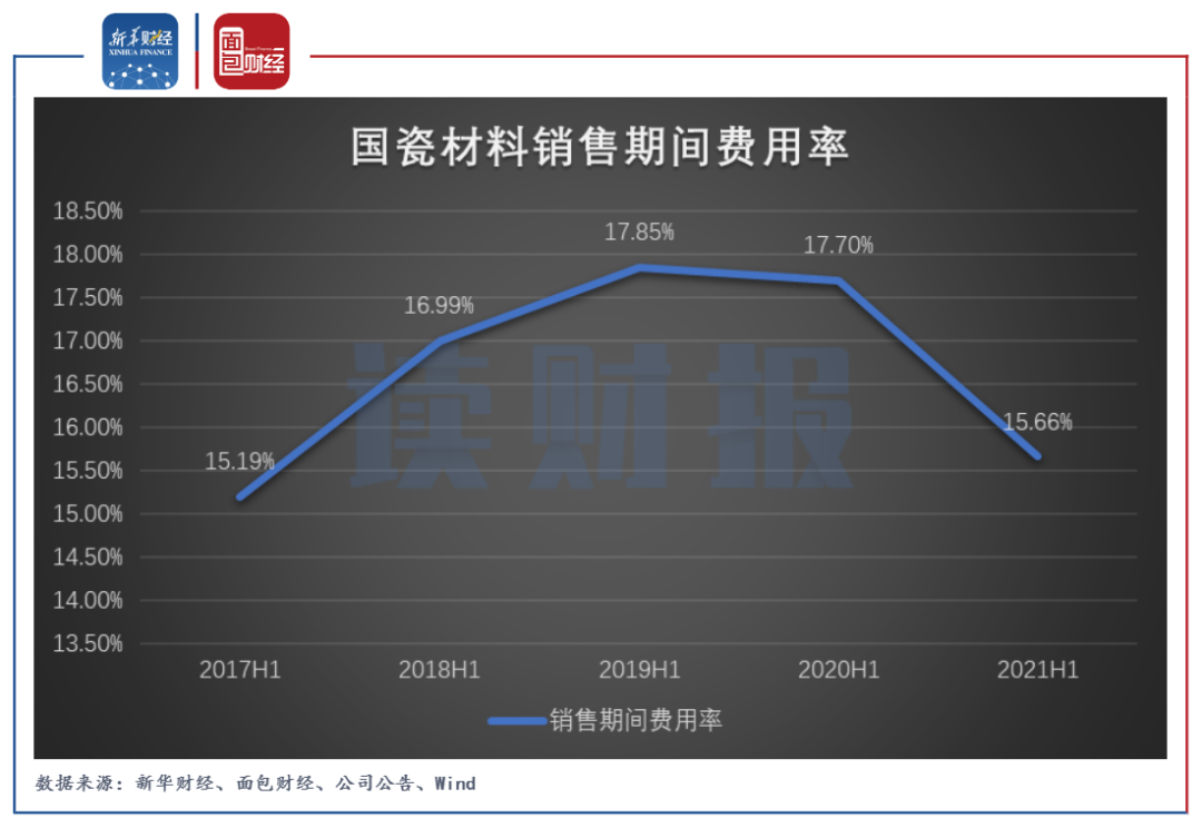 图3:2017H1至2021H1国瓷材料销售期间费用率