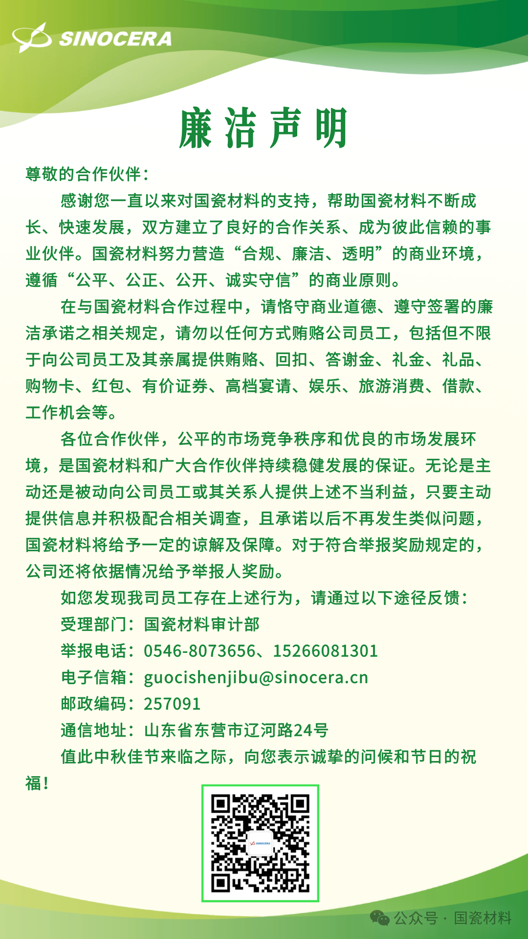 【廉洁过节】致国瓷材料合作伙伴的廉洁声明