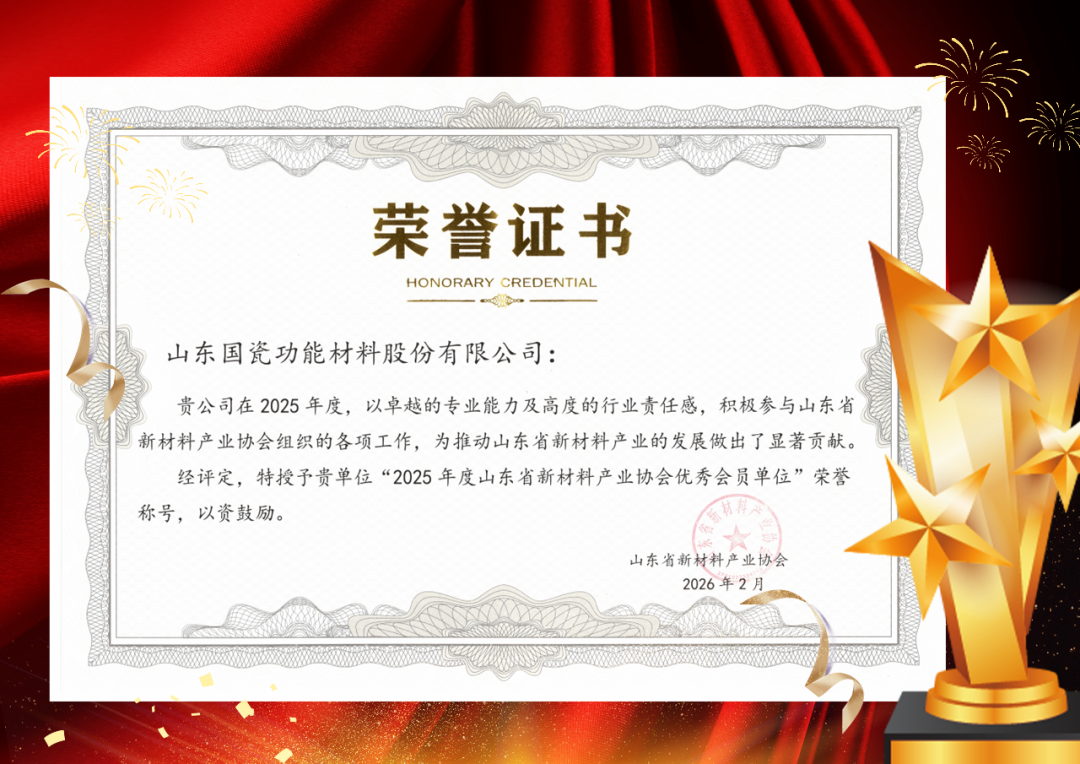 2月11日,山东省新材料产业协会公布2025年度优秀会员单位评选结果,山东国瓷功能材料股份有限公司凭借卓越的新材料创新能力、规范的经营表现及对新材料行业发展的突出贡献,获评“山东省新材料产业协会优秀会员单位”荣誉称号,这是协会对公司综合实力与行业影响力的高度认可与肯定。