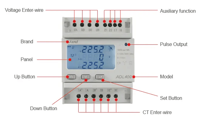 Acrel ADL400 is a smart meter designed for power supply system, industrial and mining enterprises and utilities to calculate the electricity consumption and manage the electric demand. It features the high precision, small size and simple installation. It integrates the measurement of all electrical parameters with the comprehensive electricity metering and management provides various data on previous 48 months, checks the 31st harmonic content and the total harmonic content, realizes the remote communication and the remote control with switching input and relay output and boasts the alarm output. It is fitted with RS485 communication port and adapted to MODBUS-RTU .ADL400 can be used in all kinds of control systems, SCADA systems and energy management systems. The meter meet the related technical requirements of electronic meter in the IEC62053-21standards.