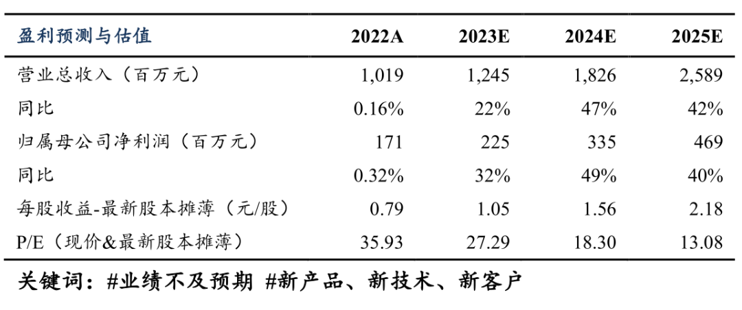 盈利预测与投资评级:我们维持公司23-25年归母净利润为2.25/3.35/4.69亿元,同比分别为+32%/49%/40%,对应现价PE为27x、18x、13x,给予24年26x,对应目标价为40.5元,维持“买入”评级。