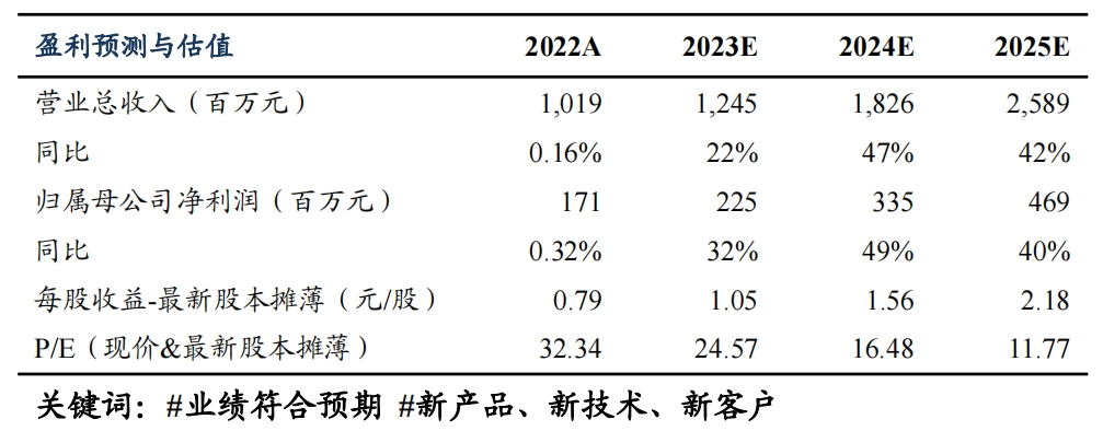 盈利预测与投资评级:我们维持公司23-25年归母净利润为2.25/3.35/4.69亿元,同比分别为+32%/49%/40%,对应现价PE为25x、16x、12x,维持“买入”评级。