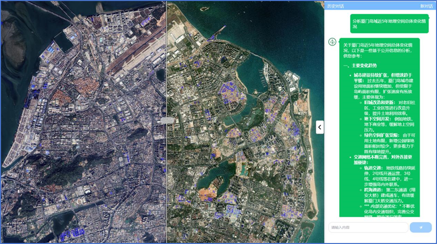 在遥感智能解译方面,针对复杂且信息丰富的遥感影像数据,公司融合了基于DeepSeek的AI Agent与目标检测、语义分割、变化检测等深度学习模型,实现了多模态遥感影像的智能解译。支持融合矢量数据、文本数据等多源信息进行综合分析,缩短信息获取周期。例如,在灾害应急响应场景下,平台可以快速解译灾害影响范围,并结合社交媒体文本信息,快速评估灾情态势,为应急指挥和救援部署提供关键的数据支撑,赢得宝贵的响应时间。