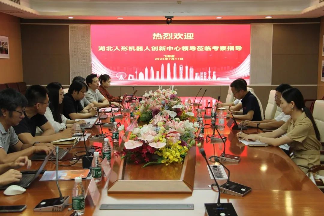湖北省人形机器人创新中心考察团在飞利信大厦九层会议室洽谈具身产业合作