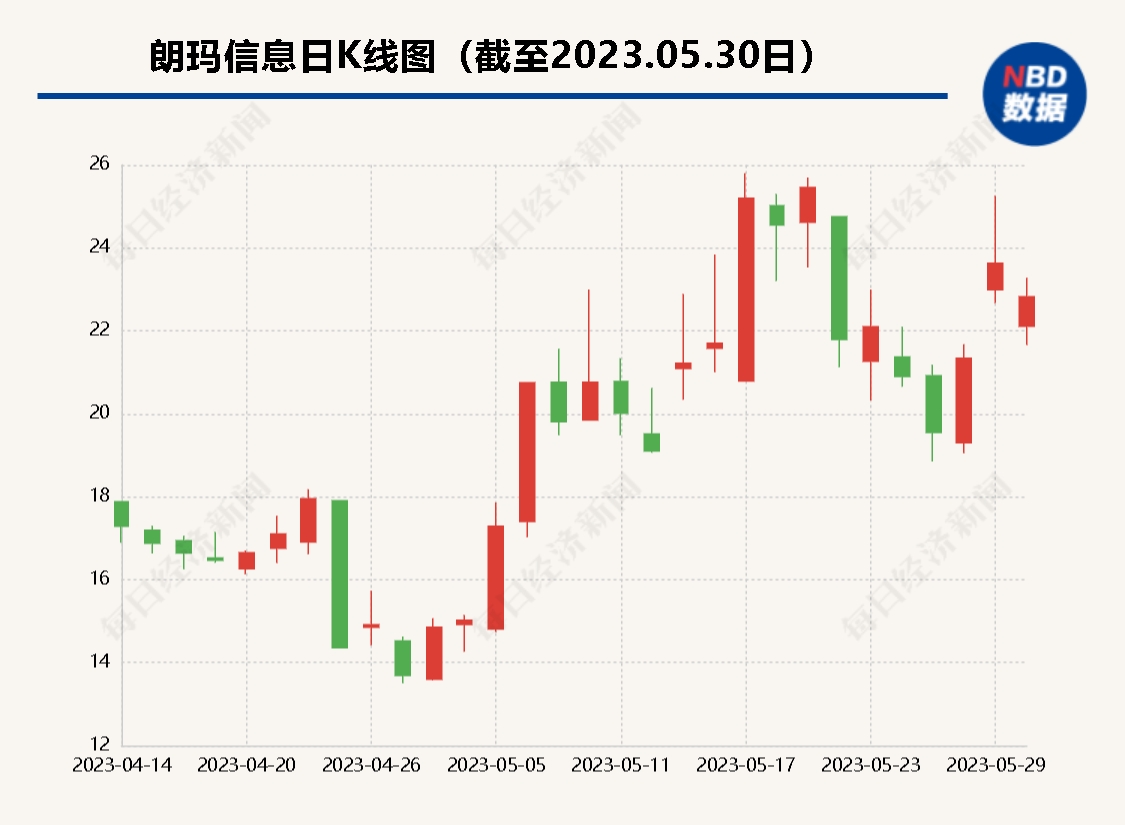 记者注意到,公告发布前的5月26日及次日(5月29日),朗玛信息股价均大幅上涨,截至收盘时分别上涨9.16%和10.73%。而5月12日,公司曾发布公告披露将召开该次会议,此后公司股价从19.10元(5月12日收盘价)最高涨至25.80元,涨幅约三成。