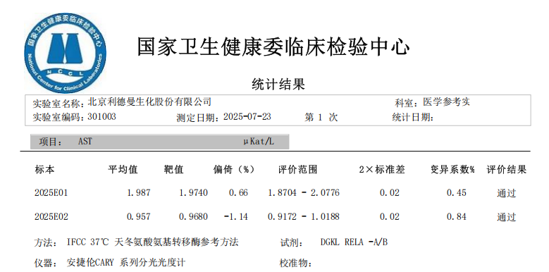 该能力验证深度契合中国临床实践与监管要求,是衡量国内参考实验室能力的权威准绳。高水准通过,印证了利德曼的测量体系能够完全满足中国临床诊断的实际需求,保障了诊断结果在国内医疗环境中的适用性与可靠性。