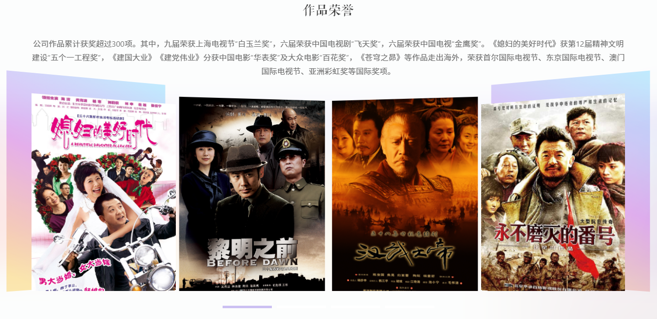影视作品方面,公司在剧集领域出品剧作百余部,代表作有《汉武大帝》《黎明之前》《嘿,老头!》等;电影领域控股北京精彩,联合出品及发行影片30余部,其中不乏《你好,李焕英》《唐人街探案3》等爆款之作。