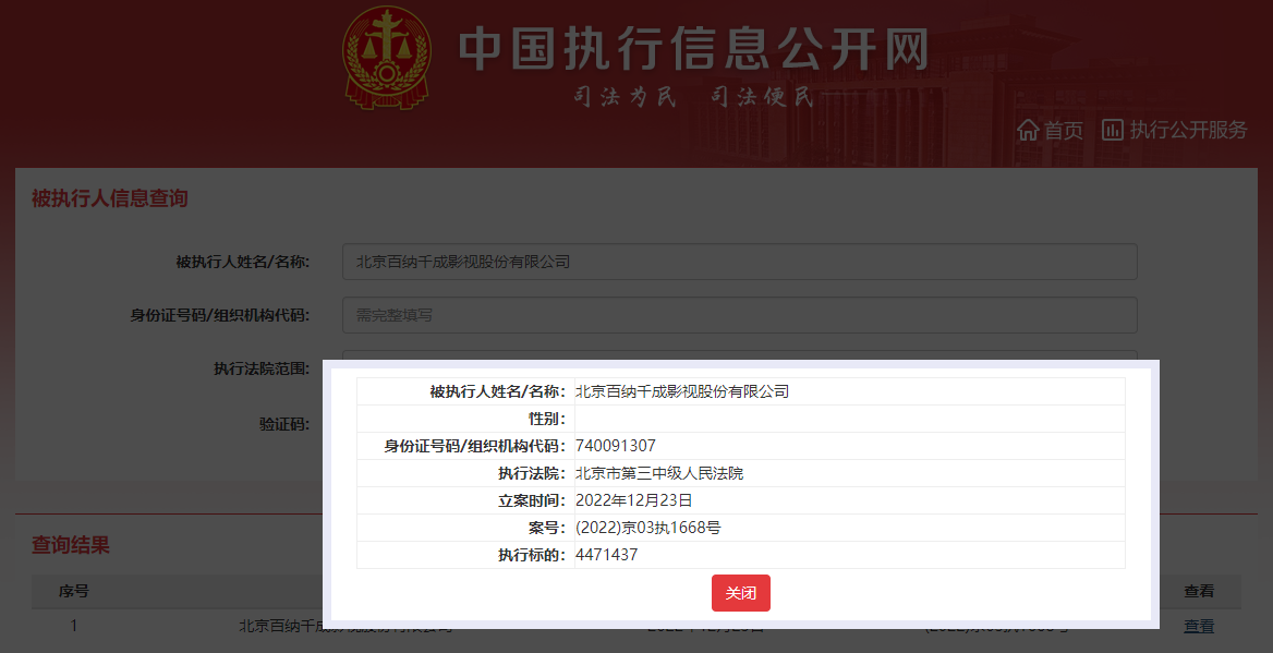 据中国执行信息公开网消息,北京百纳千成影视股份有限公司(以下简称“百纳千成”)近日新增一则被执行人信息,执行标的447余万元,执行法院为北京市第三中级人民法院,立案时间为2022年12月23日。