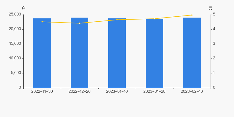 2022年11月30日至今,公司股东户数有所增长,区间涨幅为0.88%。2022年11月30日至2023年2月10日区间股价上涨10.20%。