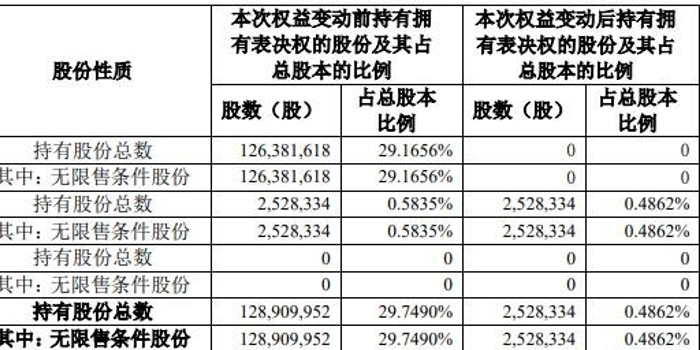 博雅生物2020年10月12日披露的《简式权益变动报告书(更新后)》显示,高特佳集团与华润医药控股于2020年9月30日签订了股份转让协议、认购协议等、高特佳集团拟将其持有的公司6933.20万股股份(占公司股份总数的16.0000%)协议转让给华润医药控股;高特佳集团拟将其持有的公司5704.96万股股份(占公司股份总数的13.1656%)的表决权委托给华润医药控股;华润医药控股拟认购博雅生物8666.50万股股票。本次权益变动前后,高特佳集团及其一致行动人持有博雅生物股份的情况如下: