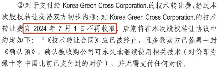 资产评估报告中提到,绿十字(中国)对GC集团的技术转让费自2024年7月1日起将不再收取,绿十字(中国)可以永久继续使用相关技术并不支付任何对价。