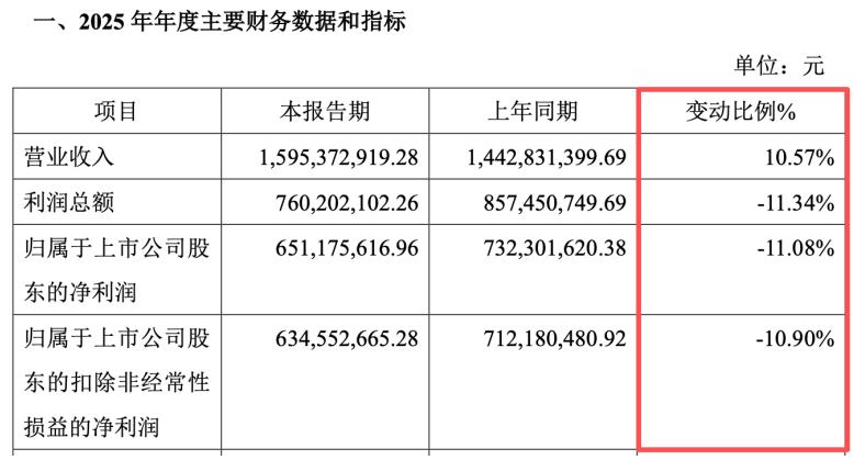 2月27日晚间,重组蛋白企业锦波生物(920982.BJ)披露2025年业绩快报,一份“增收不增利”的成绩单让市场意外。数据显示,2025年公司实现营业收入15.95亿元,同比增长10.57%;但归母净利润6.51亿元,同比下降11.08%;扣非净利润6.35亿元,同比下降10.9%。这是锦波生物近五年来首次出现净利润下滑。
