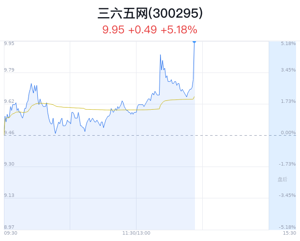 03月12日,三六五网(300295)股价大幅上涨,截至13点52分,三六五网上涨5.18%,报9.95元/股,成交8396万元,换手率5.19%。