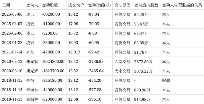 深交所公开信息显示,3月6日,三六五网董秘、董事、高管凌云在竞价交易公司股票,减持股数6.02万股,成交均价16.12元,变动金额97.04万元,变动后持股数为52.45万股。