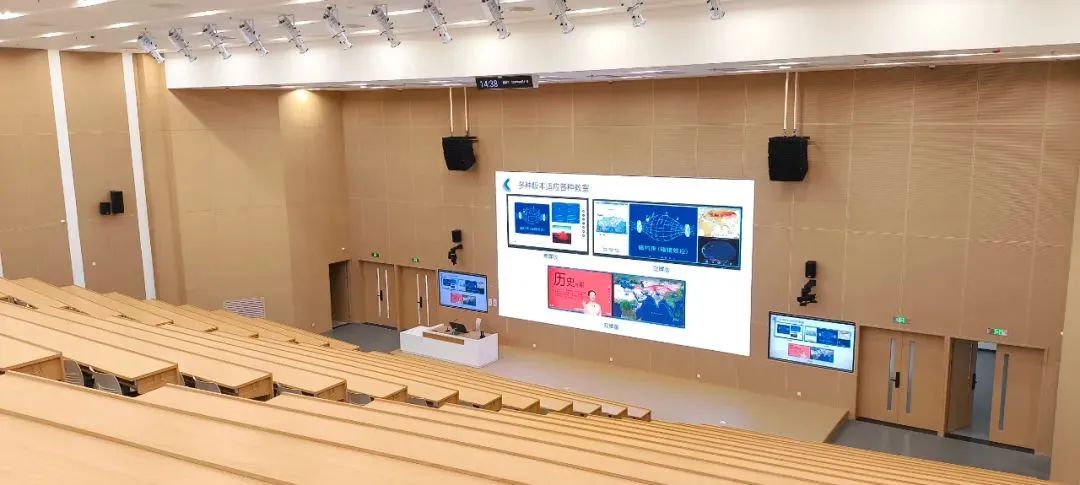 在阶梯教室,利亚德LED大屏幕与双侧一体机的完美结合,无论是复杂的学术图表、生动的教学视频,还是精细的建筑结构和设计细节,都能在大屏幕上清晰展现。这种沉浸式的教学方式,不仅丰富了教学手段,更激发了学生的学习兴趣和创造力,极大提升了教学质量。