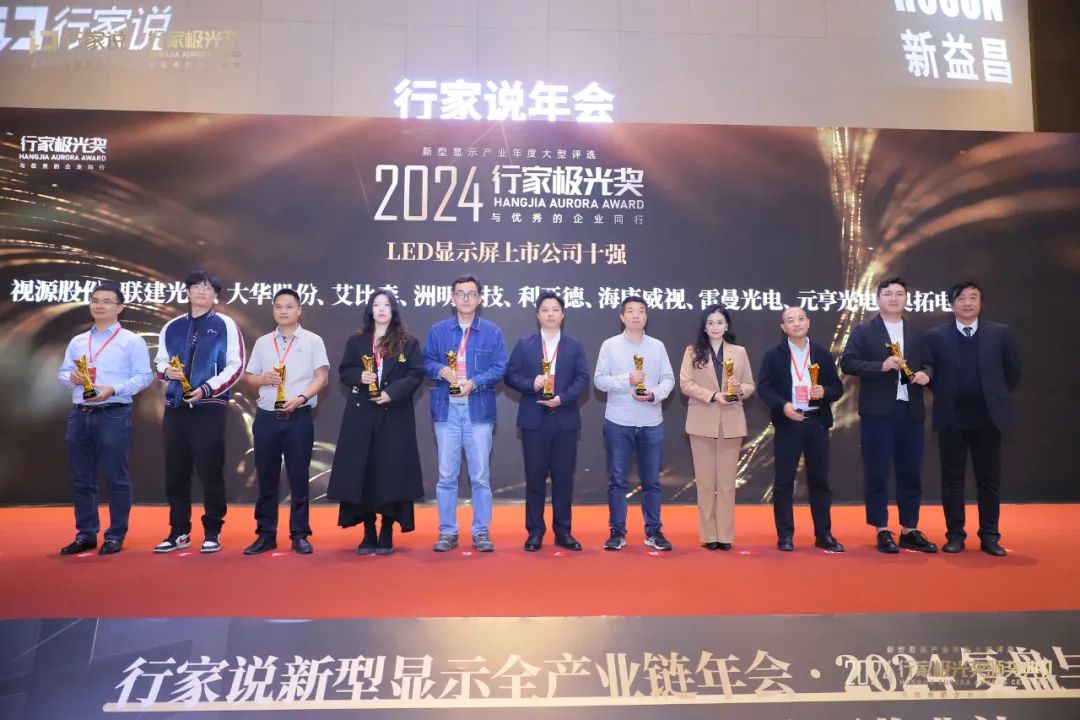 11月21日,一年一度显示产业盛会——“2024行家说Display年会·暨行家极光奖颁奖盛典”在深圳成功召开。利亚德荣登“LED显示屏上市公司十强榜单”,并凭借量子点COB一体机、影视LED显示屏品牌、MiP(薄膜Micro LED )登上“2024年度创新产品榜单”“终端品牌影响力榜单”及“供应链企业影响力榜单”四大榜单,充分彰显了利亚德作为全球行业领导者的非凡地位。
