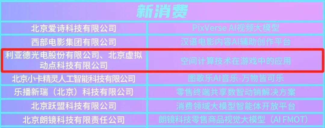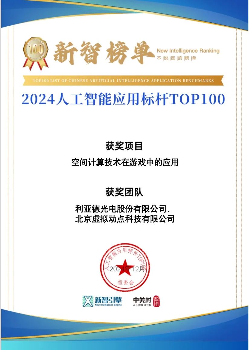 日前,“第二届人工智能应用大会”在中关村展示中心圆满举办。大会聚焦“AI+产业应用落地”,围绕创新应用场景、前沿AI技术、算力基础设施、商业化落地等话题展开讨论,并发布了“人工智能应用标杆TOP100榜单(新智榜单)”。利亚德及旗下虚拟动点凭借空间计算技术在《黑神话:悟空》游戏中的应用登榜,赛道为“新消费”类。